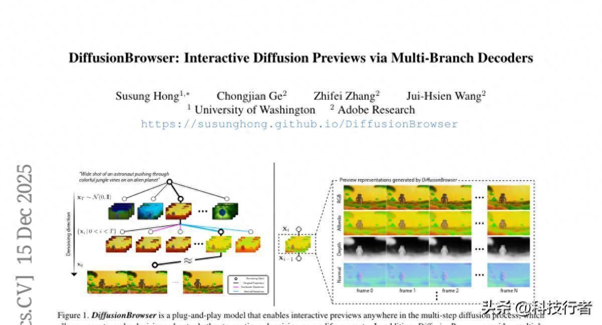 A:DiffusionBrowser是华盛顿大学和Adobe扣问院开发的视频AI生成系统,它的中枢智商是在视频生成过程中提供及时预览,让用户好像看到AI每一步在作念什么,并不错随时进行诊治。就像给黑盒子装上了透明窗户,用户毋庸再盲目恭候最终收尾。